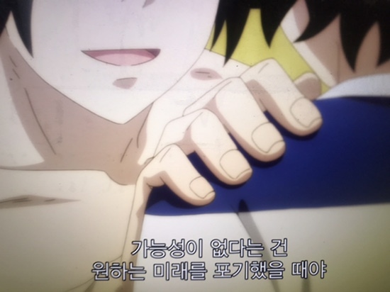 내가 남긴 기록이라고는 '가능성'에 대한 형제간 대화 중 주인공 레이지가 어린 시절 겪었던 한 에피소드에 형 슈이치의 말이다. 이 대사를 남긴 까닭은 '선택'과 '가능성'이라는 개념을 정말 아주 정말 쉽게 풀어 얘기했고, 그 내용으로 레이지는 자기 마음을 다스리는 계기가 되었기 때문이다. 글은 이렇게 쓰는구나 하며 무릎을 탁 치면서 나 역시도 위로와 격려를 받은 것 같았다. 언젠가 이 대사도 오마쥬 하고 싶다.