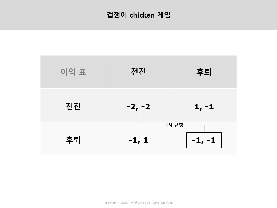 ▶ 치킨게임 사례를 담은 전략 의사결정 과정 https://blog.naver.com/hfeel/223007241267