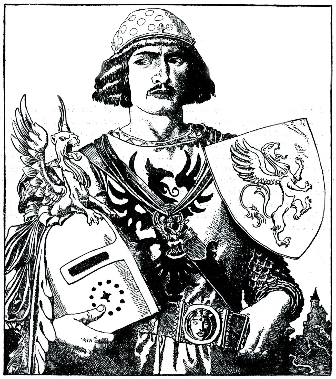 성배를 통해 신의 비전을 이룬 란슬롯 뒤 락과 일레인(펠레스의 딸)의 아들, 아서 왕의 로맨스에 나오는 순수한 기사 갤러해드.